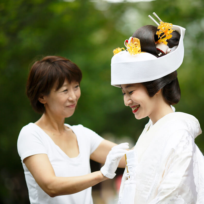 伝統スタイルから新しい和装スタイルまで。引き振袖・白無垢などの和装婚礼の全てを習得。